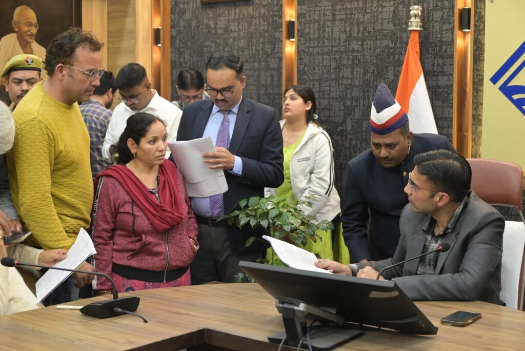 इन्द्रलोक कॉलोनी निवासी 75 वर्षीय हरीश सिंह ने सार्वजनिक मार्ग पर अतिक्रमण की शिकायत प्रस्तुत की। जिलाधिकारी ने तहसीलदार को तत्काल जांच कर रिपोर्ट प्रस्तुत करने के निर्देश दिए। प्रेमनगर निवासी 92 वर्षीय चंचल सिंह ने भूमि के दाखिल-खारिज न होने की शिकायत की। इस पर तहसीलदार को जांच कर शीघ्र रिपोर्ट उपलब्ध कराने को कहा गया।