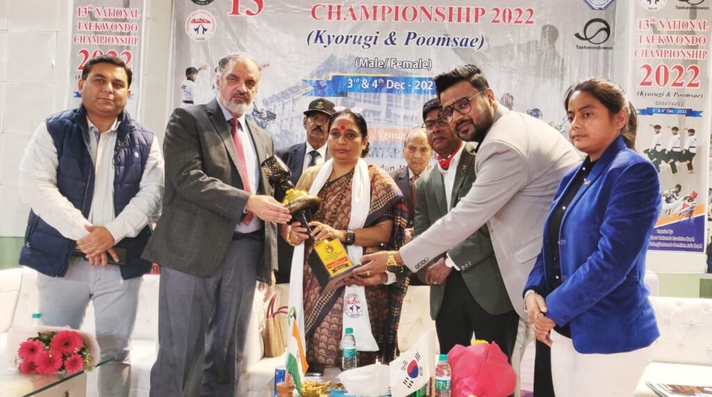 देहरादून। उत्तराखंड स्पोर्ट्स ताइक्वांडो एसोसिएशन द्वारा 13वीं नेशनल ताइक्वांडो चौंपियनशिप का आयोजन रायपुर के महाराणा प्रताप स्पोर्ट्स कॉलेज में हुआ। दो दिवसीय चौंपियनशिप का उद्घाटन विधानसभा अध्यक्ष रितु खंडूरी भूषण, खेल मंत्री रेखा आर्या, यूकेएसटीए के प्रेसिडेंट रौनक जैन, यूकेएसटीए के चेयरमैन और मुख्य संरक्षक डॉ. एस फारूक, यूकेएसटीए के आयोजक और महासचिव जावेद खान, और कोरियाई ग्रैंडमास्टर किम की उपस्थिति में किया गया। प्रतिभागियों को संबोधित करते हुए, विधानसभा अध्यक्ष रितु खंडूरी ने कहा, “यूकेएसटीए द्वारा उत्तराखंड में इस तरह के एक शानदार कार्यक्रम का आयोजन करना सराहनीय प्रयास है। यह हमारे राज्य के प्रतिभाशाली युवाओं के लिए अपना कौशल दिखाने का एक बेहतरीन मंच है। इंसान को किसी भी प्रकार का खेल खेलना आवश्यक है क्योंकि यह हमारे अच्छे शारीरिक और मानसिक स्वास्थ्य को सुनिश्चित करता है और जीवन की गुणवत्ता को बढ़ाता है।”