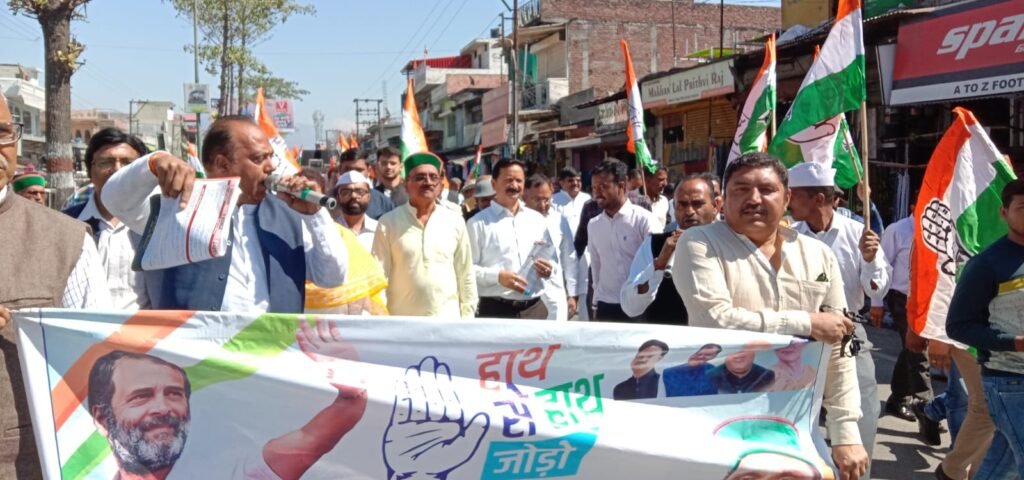 विकासनगर/देहरादून। कांग्रेस ने आज प्रदेश अध्यक्ष करण मेहरा और अनुशासन समिति के अध्यक्ष और पूर्व मंत्री नवप्रभात के नेतृत्व में विकास नगर बाजार और हरबर्टपुर बाजार में हाथ से हाथ जोड़ो यात्रा निकाली जिसमें बड़ी संख्या में स्थानीय कांग्रेसजनों ने हिस्सा लिया। पूर्व निर्धारित कार्यक्रम के अनुसार आज कांग्रेस जन सुबह 10 बजे तिलक भवन में एकत्र हुए तथा कांग्रेस के प्रदेश अध्यक्ष करण मेहरा व और मंत्री नवप्रभात के पहुंचने पर उनका गर्मजोशी से नारेबाजी कर स्वागत किया गया। इस मौके पर उपस्थित कांग्रेस जनों को संबोधित करते हुए कांग्रेस के प्रदेश अध्यक्ष करण मेहरा ने कहा कि सिर्फ अपनी राजनीति चमकाने के लिए और सत्ता हासिल करने के लिए गांधीजी के हत्यारों की विचारधारा की समर्थक भारतीय जनता पार्टी ने पूरे देश में लोगों के बीच धर्म के आधार पर वैमनस्यता पैदा कर नफरत का विष भर दिया है स लंबे समय से भारत इस विष के खतरनाक प्रभाव से कमजोर होता जा रहा था, लेकिन राहुल गांधी की भारत जोड़ो यात्रा ने इस जहर के असर को बहुत कम कर दिया है स बीजेपी की राजनीति इतनी घृणित है कि इन लोगों ने देश के ईमानदार सच्चे और विद्वान राजनेता राहुल गांधी को बदनाम करने के लिए हजारों करोड़ रुपए फूंक डाले स राहुल जी और सोनिया जी के बारे में सोशल मीडिया पर लगातार अपशब्द लिखे गए और यह भी नहीं सोचा गया कि यह दोनों लोग इस देश के शहीदों इंदिरा गांधी और राजीव गांधी का परिवार हैं स बीजेपी ने अपनी राजनीति को चमकाने के लिए लगातार सनातन धर्म को बदनाम किया और देश को बदनाम किया स भारत जोड़ो यात्रा का संदेश पूरे देश में पहुंचाने के लिए हाथ से हाथ जोड़ो यात्रा के माध्यम से इस देश में अमन चैन की बहाली और नफरत को खत्म करने का काम कांग्रेस कर रही है।