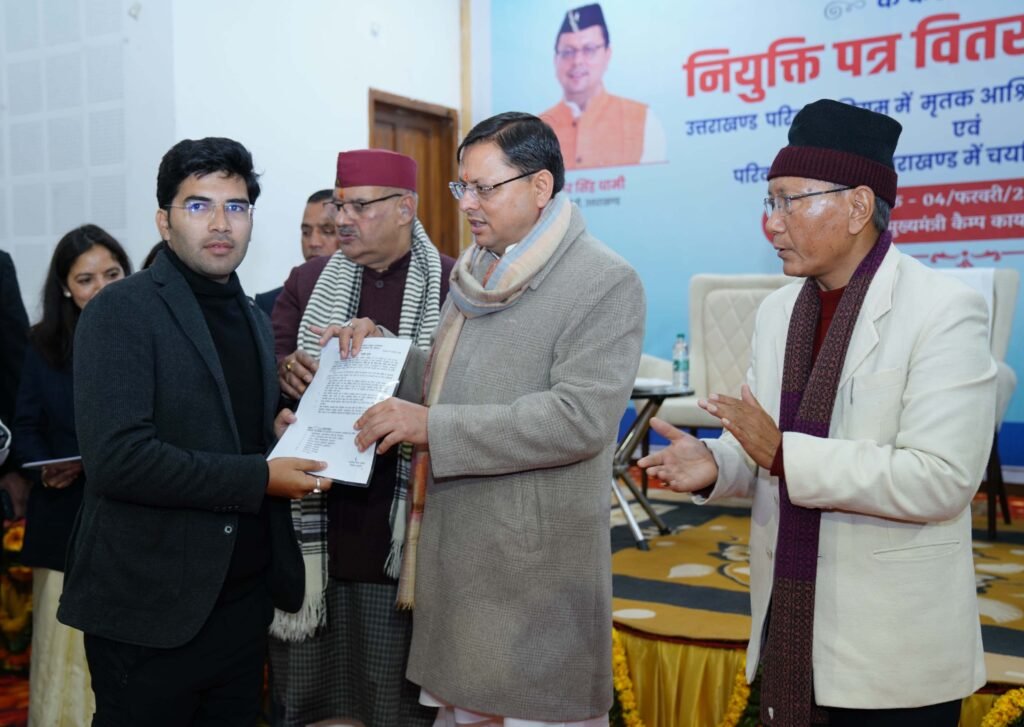 देहरादून। मुख्यमंत्री पुष्कर सिंह धामी ने मुख्यमंत्री कैम्प कार्यालय स्थित मुख्य सेवक सदन में परिवहन निगम के अन्तर्गत चालक एवं परिचालक पद के लिए 106 अभ्यर्थियों को नियुक्ति पत्र प्रदान किये। इन अभ्यर्थियों को मृतक आश्रित के रूप में परिवहन विभाग में नियुक्ति दी गई है। परिवहन विभाग के अन्तर्गत चयनित 16 सहायक लेखाकारों को भी मुख्यमंत्री ने नियुक्ति पत्र प्रदान किये। इस अवसर पर मुख्यमंत्री ने सड़क सुरक्षा माह के अन्तर्गत राज्य स्तरीय सड़क सुरक्षा जन-जागरूकता रैली का फ्लैग ऑफ किया। इस अभियान के तहत सभी जनपदों में सड़क सुरक्षा के प्रति जन-जागरूकता कार्यक्रम आयोजित किये जायेंगे। कार्यक्रम के दौरान उन्होंने सड़क सुरक्षा कैलेण्डर और सड़क सुरक्षा पर आधारित डाटा बुक का विमोचन भी किया। 16 महिलाओं को परिवहन विभाग द्वारा निःशुल्क ड्राइविंग प्रशिक्षण देने के बाद मुख्यमंत्री ने उन्हें ड्राइविंग लाइसेंस भी प्रदान किये।