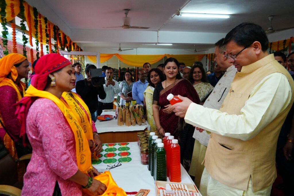 मुख्यमंत्री धामी ने इसके बाद सचिवालय से वर्चुअल माध्यम से सभी जनपदों से जुड़ी महिला स्वयं सहायता समूहों की बहनों से संवाद किया। मुख्यमंत्री ने सभी से उनके द्वारा बनाये जा रहे उत्पादों एवं उनकी बिक्री की जानकारी ली। उन्होंने कहा कि जो भी स्थानीय उत्पाद बनाये जा रहे हैं, उनमें हमें गुणवत्ता और पैकेजिंग का विशेष ध्यान रखना है। उन्होंने कहा कि हमारी बहनों ने जब भी कोई संकल्प लिया है, उसे सिद्धि तक पहुंचाया है। ‘मुख्यमंत्री सशक्त बहना उत्सव योजना’ को और बेहतर बनाया जायेगा। जिसमें महिला स्वयं सहायता समूहों द्वारा बनाये जा रहे उत्पादों को बढ़ावा देने के साथ ही उनके लिए अच्छे मार्केट की व्यवस्था भी की जायेगी।