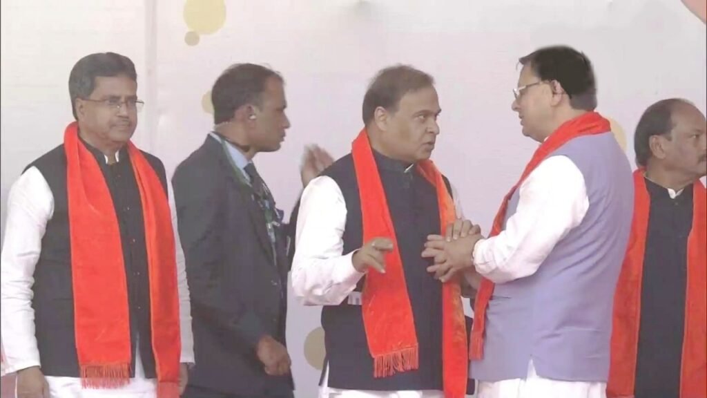 गुजरात के मुख्यमंत्री भूपेन्द्र पटेल के शपथ ग्रहण समारोह में शामिल हुए सीएम धामी