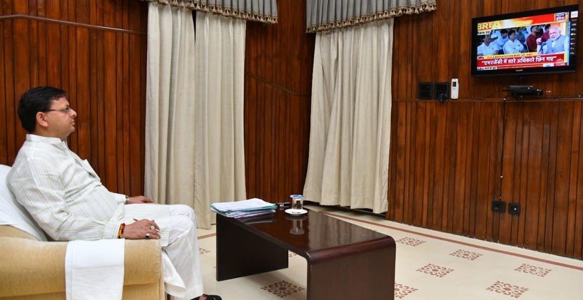 देहरादून। मुख्यमंत्री पुष्कर सिंह धामी ने रविवार को मुख्यमंत्री कैम्प कार्यालय में प्रधानमंत्री नरेन्द्र मोदी जी के मन की बात कार्यक्रम को सुना। मन की बात कार्यक्रम को सुनने के बाद मुख्यमंत्री ने कहा कि प्रधानमंत्री नरेन्द्र मोदी का मन की बात कार्यक्रम हम सभी को आगे बढ़ने के लिए प्रेरित करता है। आज के कार्यक्रम में प्रधानमंत्री ने आपातकाल का जिक्र कर बताया कि किस तरह से देश की महान जनता ने लोकतांत्रिक तरीके से आपातकाल को हटा कर फिर से लोकतंत्र स्थापित किया। लोकतंत्र इस देश की संस्कृति का मूल आधार है।