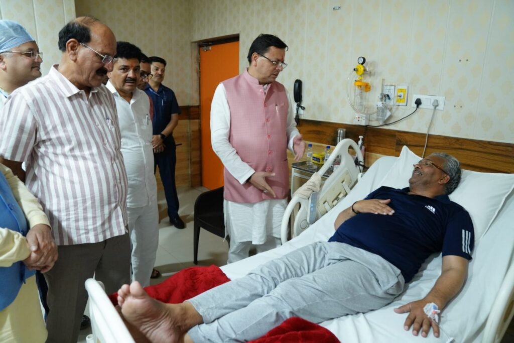 पूर्व मुख्यमंत्री त्रिवेन्द्र की कुशलक्षेम जानने के आरोग्यधाम अस्पताल पहुंचे सीएम धामी