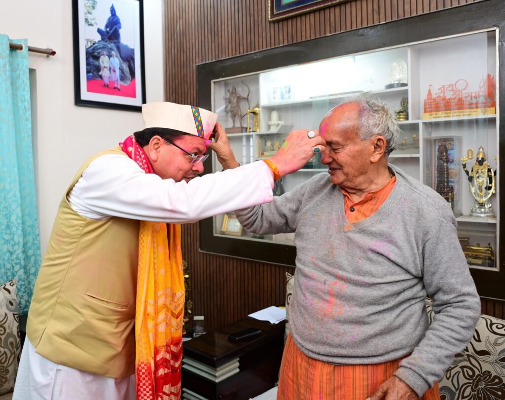 देहरादून। मुख्यमंत्री पुष्कर सिंह धामी ने गुरुवार को पूर्व मुख्यमंत्री एवं महाराष्ट्र के पूर्व राज्यपाल भगत सिंह कोश्यारी से देहरादून स्थित उनके आवास में मुलाकात कर होली की शुभकामनाएं दीं।
