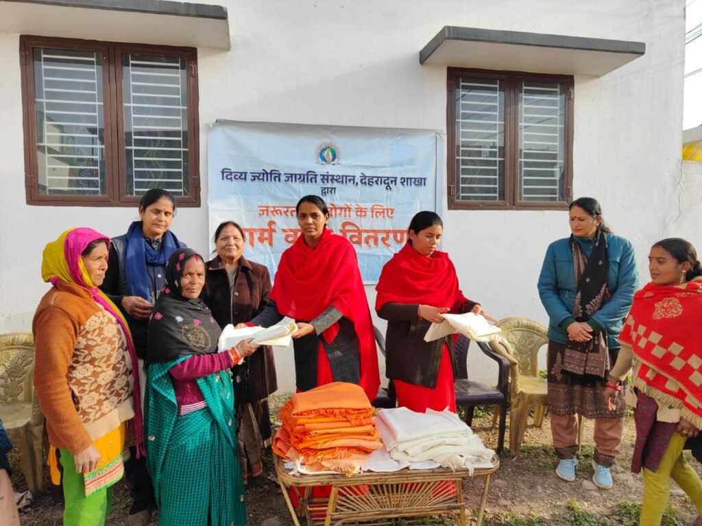 देहरादून। दिव्य ज्योति जागृति संस्थान जिसके संचालक एवं संस्थापक आशुतोष महाराज हैं उनके आशीर्वाद एवं प्रेरणा द्वारा विश्व कल्याण हेतु अनेकों प्रकल्प पूरे विश्व में चलाए जा रहे हैं जैसे निशुल्क स्वास्थ्य शिविर, दान महादान, दिव्य औषधि वितरण इत्यादि ऐसे ही देहरादून की संस्थान शाखा ने जनवरी माह में बढ़ती शीतलहर के चलते संस्थान ने एक और मुहिम चलाई है जिसमें जरूरतमंद लोगों को गर्म वस्त्र वितरित किए जा रहे हैं। यह मुहिम वृद्ध आश्रम, विकलांग आश्रम, कुष्ठ आश्रम, प्रेम धाम वृद्धाश्रम, बंजारावाला, भंडारी बाग वार्ड नंबर 71, देहरा खास, कंजन रोड अन्य कई जगहों पर यह मुहिम चलाई जा रही है। दिव्य ज्योति जागृति संस्थान का उद्देश्य सभी को निरोगी एवं स्वस्थ बनाना है। इन्हीं कामना हेतु संस्थान समय-समय पर अनेकों प्रकल्प चलाता रहा है अर्थात मानव सेवा हेतु डीजेजेएस सदैव तत्पर रहता है। प्रांतीय प्रचारक साध्वी ऋतम्भरा भारती ने बताया कि दिव्य ज्योति जागृति संस्थान द्वारा नेत्रहीन लोगो के लिए संकल्प अभियान के साथ-साथ जेल में बंद कैदियों के जीवन उत्थान के लिए समय समय पर सामाजिक अभियान संस्था द्वारा चलाया जाता आ रहा है। वही इस आयोजित कार्यक्रम में वार्ड 71 के पार्षद महिपाल धीमान द्वारा सभी सहयोगियों को धन्यवाद व्यक्त किये।