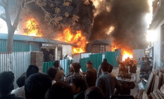 कबाड़ी के गोदाम में आग लगने से मची अफरा-तफरी