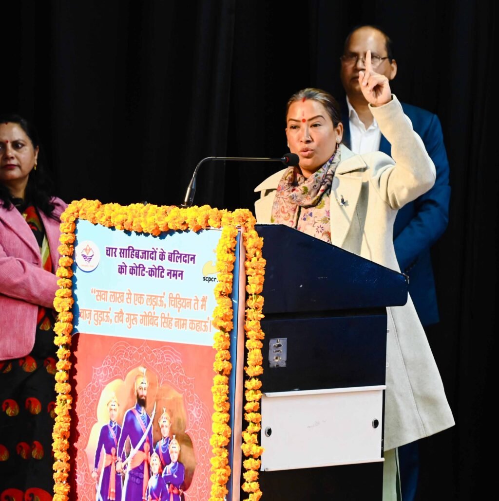 देहरादून। वीर बाल दिवस के अवसर पर उत्तराखंड बाल अधिकार संरक्षण आयोग ने बुधवार को अनुसंधान विकास एवं प्रशिक्षण संस्थान (आईआरडीटी) ऑडिटोरियम, सर्वे चौक देहरादून में एक गरिमायम कार्यक्रम का आयोजन किया गया। कार्यक्रम में सिख धर्म के दसवें गुरु श्री गुरू गोविंद सिंह जी के चारों वीर साहिबजादों- साहिबजादा अजीत सिंह, जुझार सिंह, जोरावर सिंह और फतेह सिंह के अद्वितीय बलिदान को श्रद्धापूर्वक नमन किया गया। कार्यक्रम का उद्देश्य बच्चों में साहस, नैतिक मूल्यों, आत्मसम्मान तथा अधिकारों के प्रति जागरूकता का प्रसार करना था।