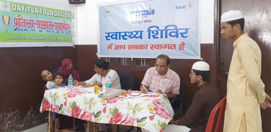 देहरादून। मदरसा दार-ए-अरकम आजाद कालोनी में मातृत्व वरदान हॉस्पिटल के सहयोग से रविवार को निःशुल्क स्वास्थ्य परीक्षण एवं दवा वितरण शिविर का आयोजन किया गया। जिसमें 150 से अधिक मरीजों का स्वास्थ्य परीक्षण कर उन्हें निः शुल्क दवा वितरित की गई। शिविर का शुभारंभ बैंक ऑफ इंडिया के जोलन मैनेजर जय नारायन, मातृत्व वरदान हॉस्पिटल के नवजात व बाल रोग विशेषक्ष डॉ. ए बी सैनी, स्त्री एवं प्रसूति रोग विशेषक्ष डॉ. शिखा गुप्ता व मदरसा दार-ए-अरकम के सचिव मौहम्मद शाहनजर ने फीता काट कर किया।