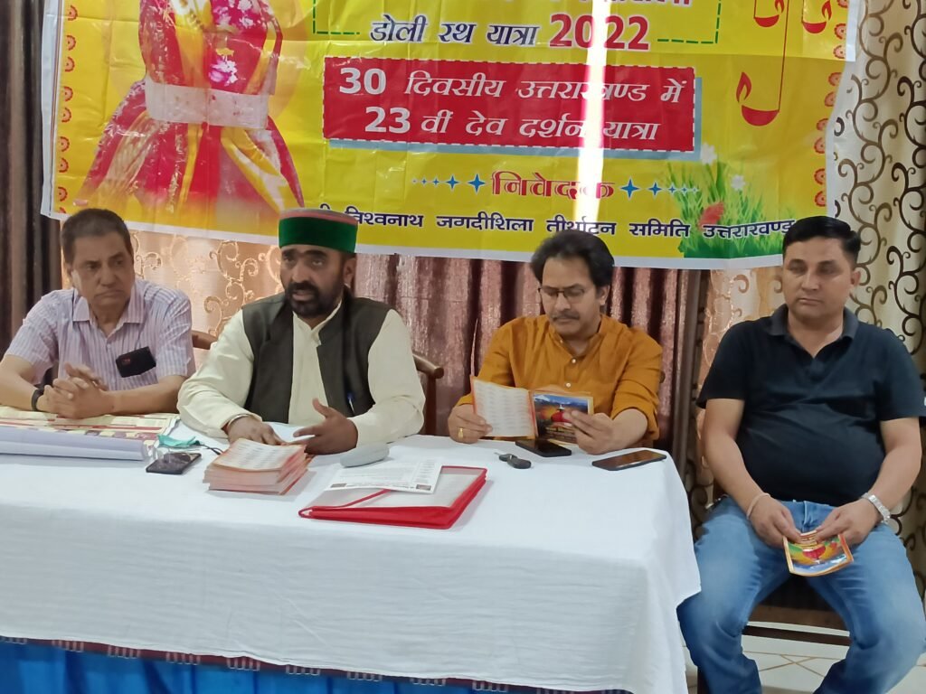 देहरादून। देवभूमि उत्तराखंड में 1000 धाम स्थापित करने व विश्व शांति के उद्देश्य से 23वीं बाबा विश्वनाथ मां जगदीशिला डोली रथयात्रा 11 मई से शुरु होने जा रही है। यह यात्रा 30 दिन की होगी। डोली रथ यात्रा का कार्यक्रम शनिवार को देहरादून में डोली यात्रा संयोजक पूर्व मंत्री मंत्री प्रसाद नैथानी द्वारा घोषित किया गया है। डोली रथ यात्रा 10 मई को विशोन पर्वत टिहरी से हरिद्वार पहुंचेगी। 11 मई को हरिद्वार में हरि की पौड़ी पर गंगा स्नान के बाद डोली रथ यात्रा का शुभारंभ होगा। इस यात्रा के माध्यम से प्रदेश में साढ़े दस हजार किलोमीटर की यात्रा तय की जाएगी। उन्होंने सरकार से अनुरोध किया कि पूर्व में यात्रा के दौरान जो 141 स्थान चयनित हो चुके हैं उन्हें तीर्थाटन सर्किट में शामिल किया जाए।
