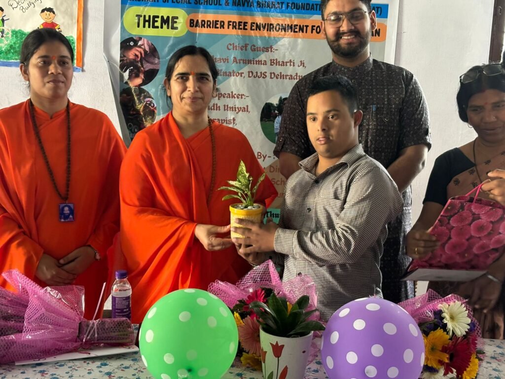 देहरादून। नवरात्र के पावन अवसर पर नव्य भारत फ़ाउंडेशन (एनबीएफ भारत) एवं सशक्त स्पेशल स्कूल, बालावाला, देहरादून, उत्तराखंड द्वारा “मिशन अपर्णा शक्ति “ के अंतर्गत एक विशेष सेमीनार दिव्यांग जन के लिए आयोजित करवाया गया। इस सेमिनार में प्रखर वक्ता साध्वी अरुणिमा भारती कोर्डिनेटर ,दिव्य ज्योति जागृति संस्थान ,देहरादून मुख्य अतिथि के नाते उपस्थित रही। उन्होंने दिव्यांग जन को धर्म के मार्ग पर प्रशस्त होने का संदेश दिया और दिव्य दृष्टि प्राप्त करने का मार्ग बताया, साध्वी जी ने बताया कि मनुष्य परमात्मा की सर्वश्रेष्ठ कृति है।