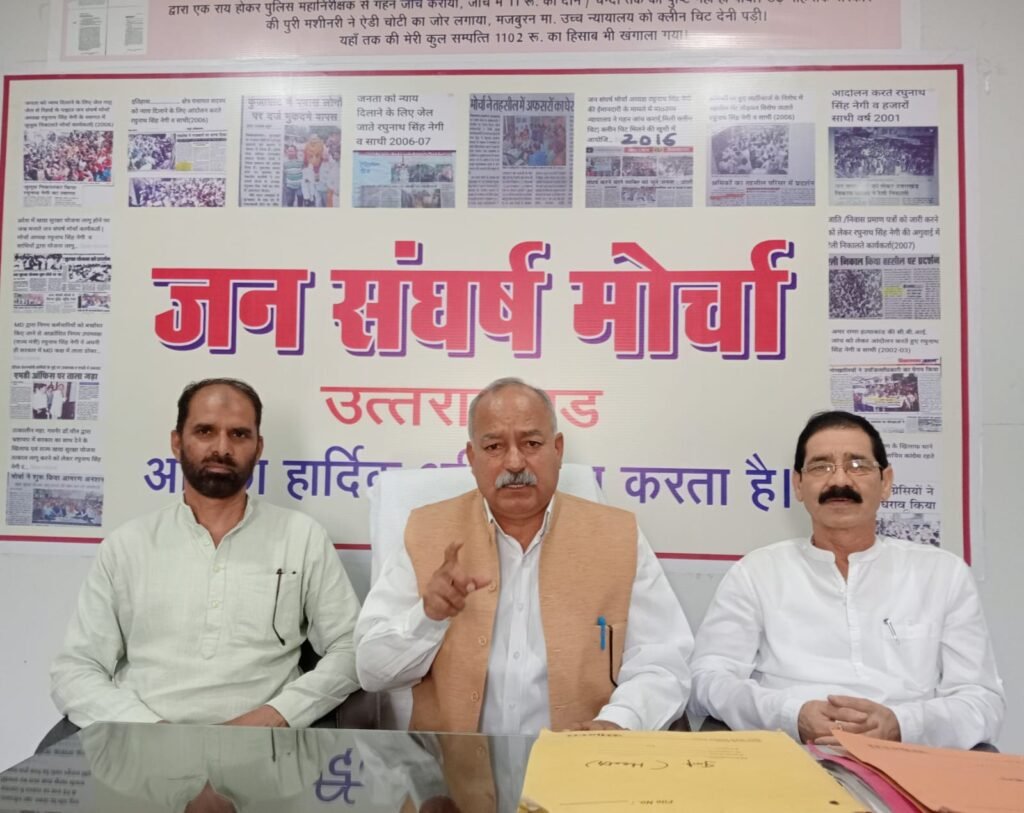 विकासनगर । जन संघर्ष मोर्चा अध्यक्ष एवं जीएमवीएन के पूर्व उपाध्यक्ष रघुनाथ सिंह नेगी ने पत्रकारों से वार्ता करते हुए कहा कि क्षेत्र में बिजली-पानी की कटौती ने आमजन का जीना मुश्किल कर दिया है, जिसको मोर्चा कतई बर्दाश्त नहीं करेगाद्य नेगी ने कहा कि विगत कई दिनों से बिजली कटौती को लेकर जनता का आक्रोश इस कदर बढ़ा कि गुस्साए जनप्रतिनिधियों एवं आमजन ने बिजली दफ्तर पर धावा बोला, जो कि गुस्से की परिणिति थी, लेकिन विभाग द्वारा मुकदमा कायम करवाकर बहुत ही गैर जिम्मेदाराना काम किया है द्यविद्युत विभाग के अधिकारियों को जनहित में मुकदमा तुरंत वापस लेना चाहिएद्य नेगी ने कहा कि जल संस्थान के अधिकारियों की लापरवाही भी लोगों की परेशानी का सबक बन रही है द्यबिजली कटौती की दिशा में विभाग को जनरेटरों का सहारा लेना चाहिएद्यमोर्चा ने चेतावनी देते हुए कहा कि अगर विद्युत-जल संस्थान के अधिकारियों ने व्यवस्था में सुधार नहीं किया तो आर-पार की लड़ाई लड़ी जाएगी द्यपत्रकार वार्ता में मोर्चा महासचिव आकाश पंवार व हाजी मोहम्मद असद मौजूद थेद्य