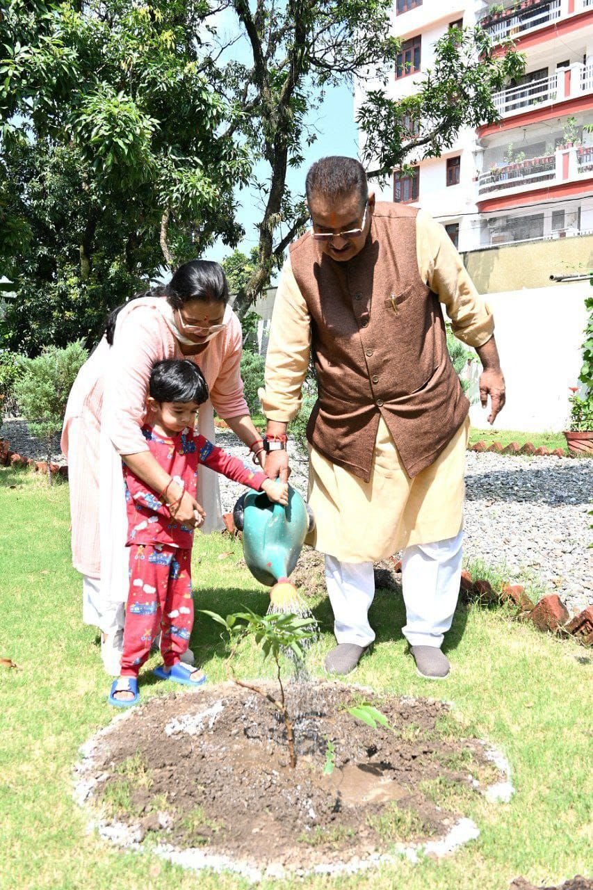 देहरादून । सैनिक कल्याण मंत्री गणेश जोशी ने लोकपर्व हरेला पर्व के अवसर पर देहरादून के न्यू कैंट रोड स्थित शासकीय आवास में देश के लिए अपने प्राणो की आहूति देने वाले वीर जवानों की स्मृति में परिवार संग वृक्षारोपण किया और श्रद्धासुमन अर्पित किए। सैनिक कल्याण मंत्री ने पर्यावरण के संरक्षण एवं संवर्धन के लिए अधिक से अधिक वृक्षारोपण का आव्हान किया। इस अवसर पर मंत्री जोशी की धर्मपत्नी निर्मला जोशी सहित अन्य पारिवारिक सदस्य उपस्थित रहे।
