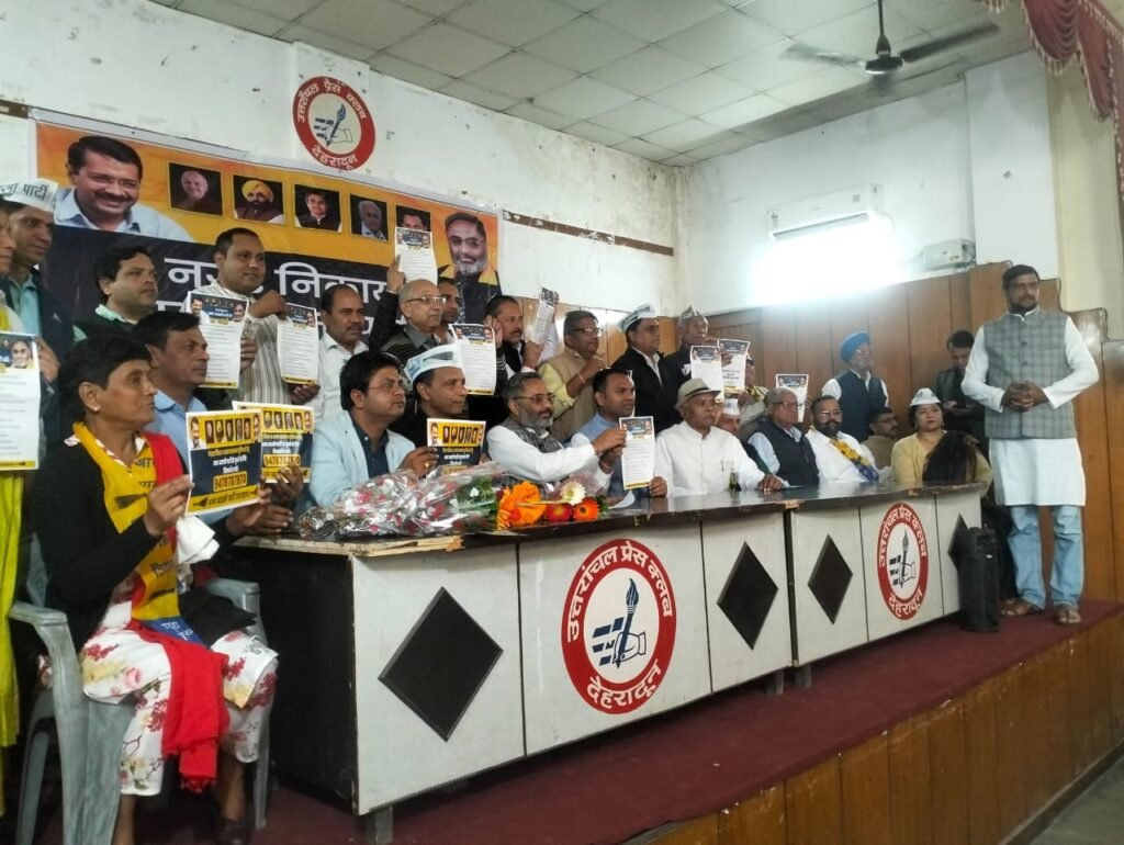 देहरादून। देहरादून स्थित प्रेस क्लब मे आम आदमी पार्टी उत्तराखंड द्वारा प्रेस वार्ता की गई। जिसके अंतर्गत पार्टी द्वारा आगामी निकाय चुनाव मे विजय होने पर राज्य की आम जनता को 15 गारंटी देने की घोषणा की गई। इस अवसर पर विधायक त्रिलोकपुरी दिल्ली व सह प्रभारी आप उत्तराखंड रोहित मेहरौलिया ने कहा कि यदि राज्य की जनता आगामी निकाय चुनाव मे आप के प्रत्याशियों को भारी मतों से विजय बनाकर निकाय चुनाव मे प्रचंड बहुमत देती है तो हम जनता को निकाय कार्यक्षेत्र से संबंधित 15 महत्वपूर्ण कार्यों को पूर्ण करने की गारंटी देते है,मुख्यत हम निकाय मे वर्षों से खाली पडी भूमि पर स्कूल,मौहल्ला क्लिनिक निर्मित कर जनता को फ्री शिक्षा व स्वास्थ्य सुविधाऐं उपलब्ध करायेंगे, साथ ही बारात घरों का निर्माण कर जनता को न्यूनतम दर पर मुहैया करेंगे, सफाई कर्मचारियों के नियमितीकरण से लेकर शहरों मे वरिष्ठ नागरिकों को वाचनालय उपलब्ध करायेंगे, साथ ही रेहडी पटरी वालो वेंडिंग जोन बनाकर देंगे।