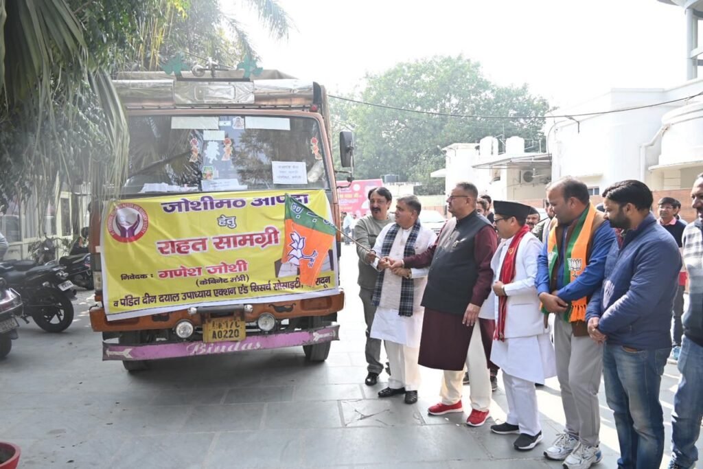 देहरादून। पंडित दीनदयाल उपाध्याय एक्शन एंड रिसर्च सोसाइटी द्वारा जोशीमठ में भू-धंसाव से उत्पन्न हुई आपदा की स्थिति को देखते हुए आपदा प्रभावितों के लिए राहत सामग्री के वाहन को कैबिनेट मंत्री गणेश जोशी और बीजेपी प्रदेश अध्यक्ष महेंद्र भट्ट ने हरी झंड़ी दिखाकर रवाना किया। राहत सामग्री में हीटर, कंबल, केतली, बिस्कुट, मैगी, दंत क्रांति, साबुन, नमकीन इत्यादि है।