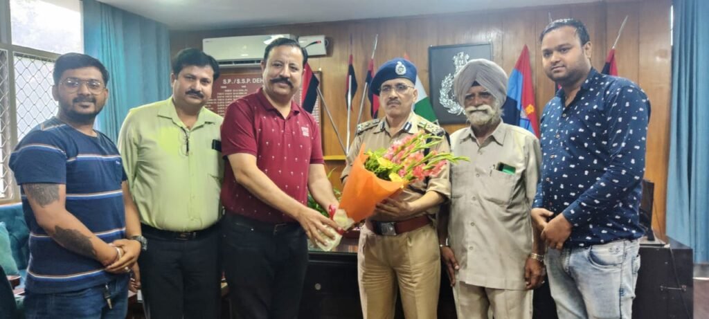 19 अगस्त को धामावाला बाज़ार कोतवाली नगर क्षेत्र में सर्राफ़ा व्यापारी के यहाँ हुई सोने की चोरी का पुलिस द्वारा सफल अनावरण करने पर सर्राफ़ा व्यापार मंडल के अध्यक्ष सुनील मेसोन तथा अन्य प्रतिनिधियों द्वारा डीआईजी/एसएसपी दलीप सिंह कुँवर को उनके कार्यालय में पुष्पगुच्छ देकर आभार व्यक्त किया गया। पुलिस की कार्यप्रणाली की प्रशंसा करते हुए सर्राफ़ा मंडल के प्रतिनिधियों द्वारा दून पुलिस का बहुत बहुत धन्यवाद किया गया