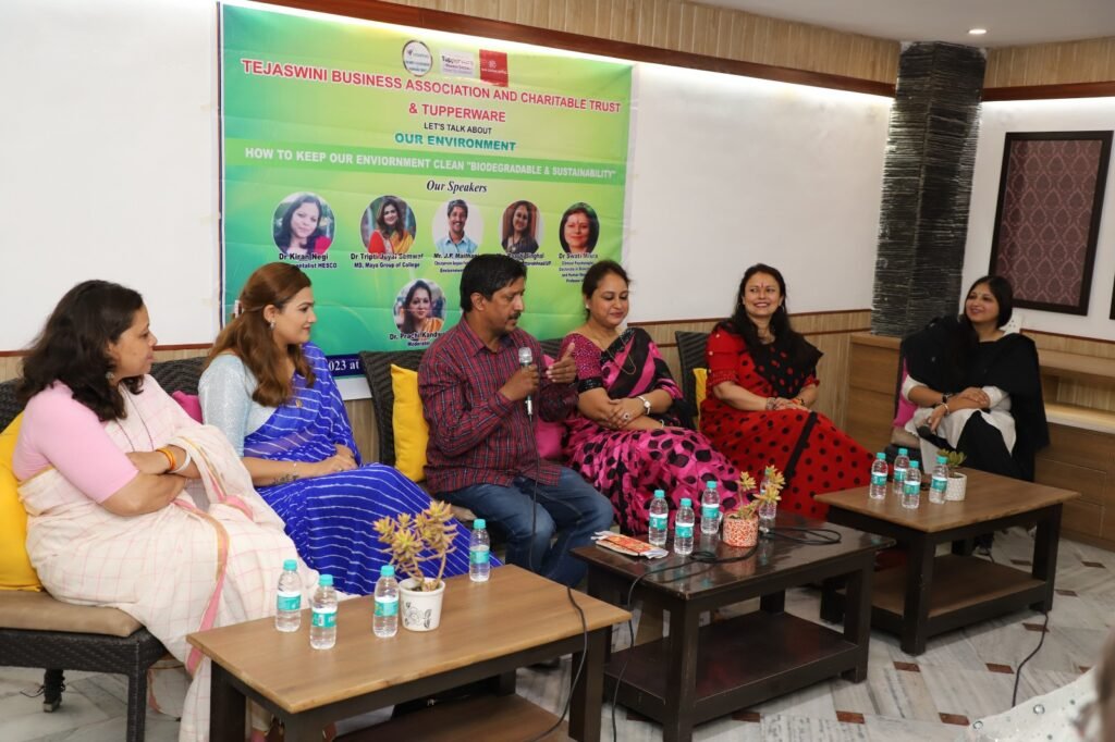 देहरादून। तेजस्वनी चैरिटेबल ट्रस्ट एवं बिजनेस एसोसिएशन एवं टप्परवेयर की ओर से एनवायरमेंट डे के उपलक्ष में हाउ टू कीप आवर एनवायरमेंट क्लीन बायोडिग्रेडेबल एंड सस्टेनेबिलिटी विषय पर एक परिचर्चा का आयोजन किया गया जिसमें विभिन्न क्षेत्रों से आए एनवायरनमेंट लिस्ट लोगों ने अपने अपने विचार व्यक्त किए।