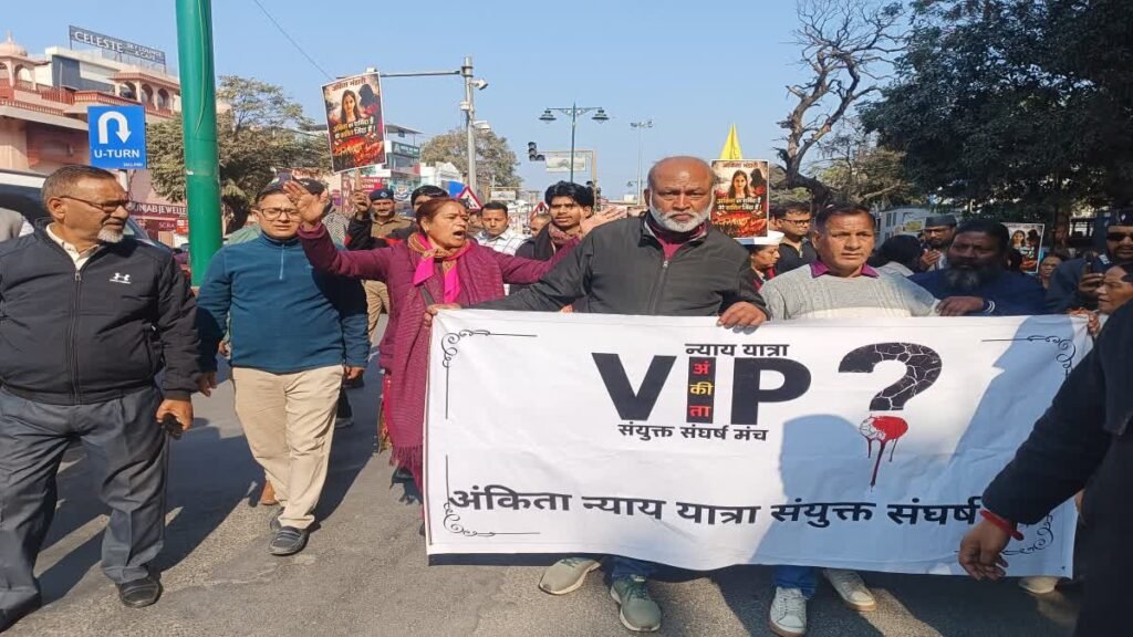 उधर, वाम मोर्चा और जन संगठनों ने अलग से अंकिता को न्याय दिलाने और वीआईपी को जेल भेजने की मांग को लेकर गांधी पार्क से घंटाघर तक पैदल मार्च निकालते हुए विरोध प्रदर्शन किया। सीपीआई नेता समर भंडारी का कहना है कि प्रदेश सरकार ने अंकिता भंडारी हत्याकांड की सीबीआई से जांच कराए जाने की संस्तुति कर दी है। लेकिन हमारी पहले दिन से डिमांड थी, यह जो सीबीआई जांच हो, वो सुप्रीम कोर्ट के सिटिंग जज की निगरानी में हो। अन्यथा कई तरीके के दबावों से प्रदेश सरकार लगातार अपराधियों को बचाने का प्रयास कर रही है। हमारा कहना है कि अगर इस मामले की न्याय संगत जांच करनी है, तो जांच में सुप्रीम कोर्ट के सिटिंग जज का रहना अनिवार्य है।