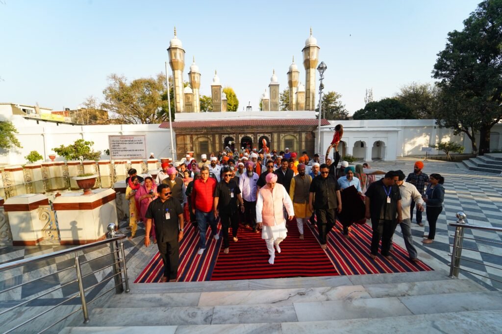 देहरादून। पंजाब के विभिन्न हिस्सों से 150 सदस्यीय पैदल संगत का जत्था बुधवार शाम को श्री दरबार साहिब पहुंचा। शाम 5ः30 बजे श्री दरबार साहिब देहरादून के दर्शनी गेट पहुंचते ही पैदल संगत का पुष्प वर्षा व ढोल नगाड़ों की थाप के साथ दूनवासियों व दरबार श्री गुरु राम राय जी महाराज, प्रबन्ध समिति एवम् श्री झंडा जी मेला आयोजन समिति ने जोरदार स्वागत किया। दर्शनी गेट व श्री दरबार साहिब परिसर में श्री दरबार साहिब के सज्जादानशीन श्रीमहंत देवेन्द्र दास जी महाराज की अगुवाई में पुष्प वर्षा के बीच संगत का जोरदार स्वागत हुआ। श्री महाराज जी ने संगत को दर्शन दिए व आशीर्वाद दिया। श्री दरबार साहिब परिसर व निकटवर्ती समूचा क्षेत्र श्री गुरु राम राय जी महाराज के गगनभेदी जयकारों से गूंज उठा।
