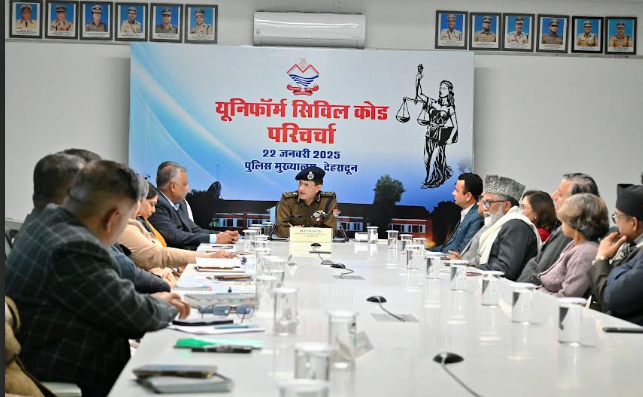 देहरादून। पुलिस मुख्यालय स्थित सभागार में समान नागरिक संहिता के विषय पर एक महत्वपूर्ण वर्कशॉप का आयोजन किया गया। जिसमें वरिष्ठ पुलिस अधिकारियों सहित विभिन्न सामाजिक संगठनों के प्रतिनिधि व पदाधिकारियों द्वारा प्रतिभाग कर अपने-अपने विचार रखे और विभिन्न विधिक बिन्दुओं पर चर्चा की गयी। निवेदिता कुकरेती, पुलिस उप महानिरीक्षक/अपर सचिव गृह उत्तराखण्ड शासन ने प्रस्तुतिकरण के माध्यम से समान नागरिक संहिता के विधिक बिन्दुओं-विवाह, विवाह विच्छेद, विल, सहवासी सम्बन्ध, के पंजीकरण की अनिवार्यता, व उसकी प्रक्रिया पर विस्तार पूर्वक पर प्रकाश डाला। साथ ही संहिता के विधिक प्रावधानों के उल्लंघन के दाण्डक परिणामों के बारे में बताया गया। संहिता को लागू करने व उसकी प्रक्रिया के तहत संबंधित पदाधिकारियों के दायित्व व कर्तव्यों के बारे में भी बताया गया।