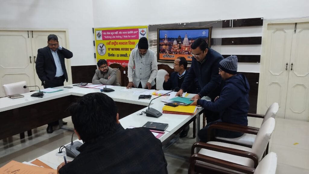 हरिद्वार। अपर जिलाधिकारी (प्रशासन) पी0एल0 शाह की अध्यक्षता में बुधवार को कलक्ट्रेट सभागार में नव सृजित नगर पंचायत पाडली गुर्जर, ईमली खेड़ा, ढण्ढेरा, सुल्तानपुर आदमपुर, एवं रामपुर वार्डों के परिसीमन के सम्बन्ध में आपत्तियों की सुनवाई हुई।
