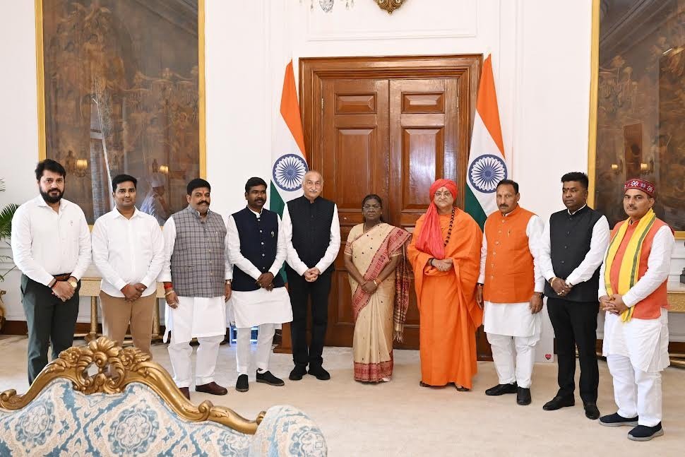 हरिद्वार। श्रीदशनाम पंचायती जूना अखाड़े के महामंडलेश्वर डॉ. स्वामी उमाकांतानन्द सरस्वती जी महाराज संस्थापक अध्यक्ष श्रीराम डिवाईन चैरिटेबल ट्रस्ट हरिद्वार एवं शाश्वतम् फाउंडेशन मारीशस के पावन सानिध्य में शाश्वतम् परिवार के प्रतिनिधियों ने भारत की महामहिम राष्ट्रपति द्रोपदी मुर्मू से राष्ट्रीय मुद्दों को लेकर शुक्रवार को शिष्टाचार भेंट की। डेलीगेशन में भारतीय जनता पार्टी के पूर्व राज्यसभा सांसद एवं एस सी/एस टी मोर्चा के राष्ट्रीय अध्यक्ष मा समीर उरांव, वरिष्ठ भाजपा नेता राकेश भास्कर झारखंड, हरिद्वार शाश्वतम् परिवार के राष्ट्रीय संयोजक डॉ जितेन्द्र सिंह एवं वरिष्ठ आयुर्वेदिक वैद्य दीपक कुमार तथा अन्य प्रतिनिधि भी उपस्थित रहे।