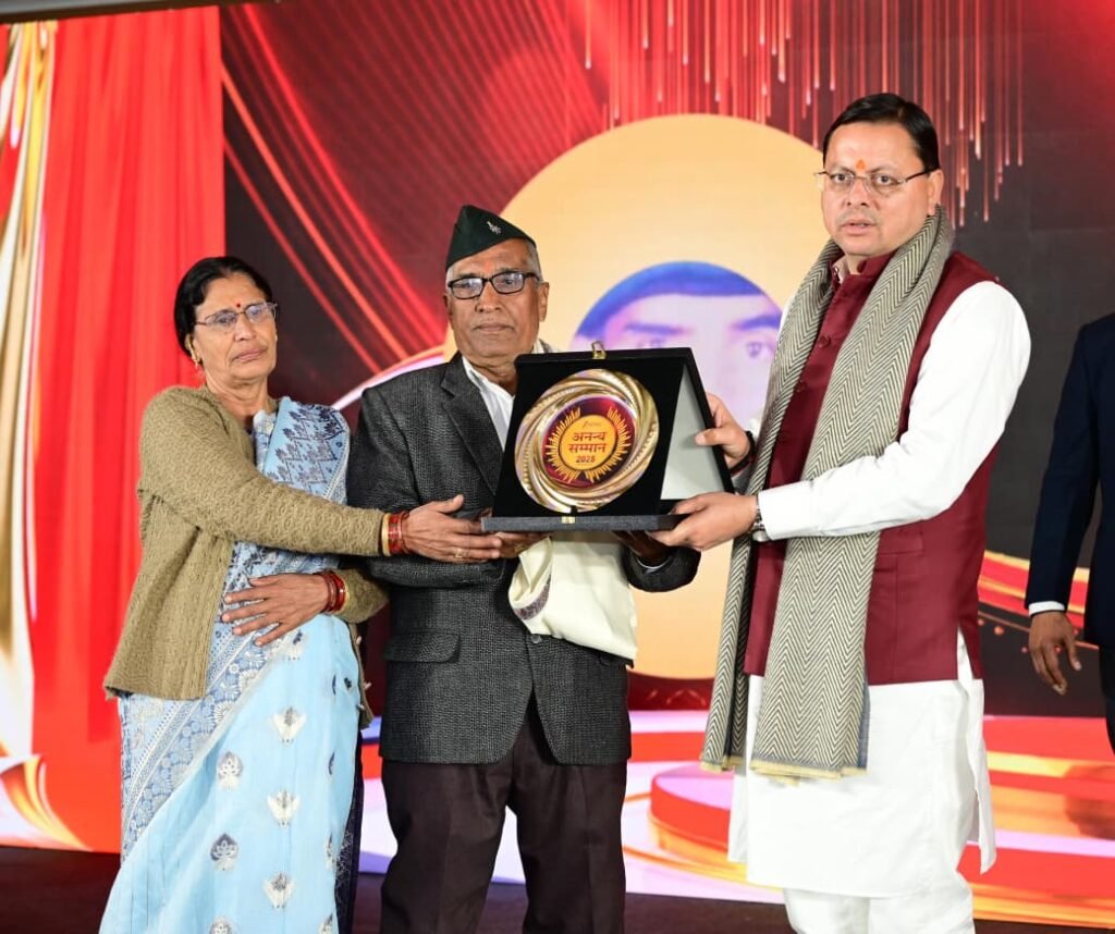देहरादून। मुख्यमंत्री पुष्कर सिंह धामी ने शुक्रवार को सहस्त्रधारा रोड, स्थित एक होटल में उत्तराखंड अनन्य सम्मान कार्यक्रम में प्रतिभाग किया। इस दौरान मुख्यमंत्री ने शहीद सैनिकों के परिजनों को सम्मानित किया। मुख्यमंत्री ने शहीदों को श्रद्धांजलि अर्पित करते हुए कहा कि शहीदों के परिजनों का संघर्ष, पीड़ा और देश के प्रति अटूट निष्ठा हम सभी के लिए प्रेरणा है। उन्होंने कहा देवभूमि उत्तराखंड वीरभूमि के रूप में भी जाना जाता है। प्रदेश के लगभग प्रत्येक परिवार का सदस्य सेना या अर्ध सैनिक बलों से जुड़ा हुआ है। उत्तराखंड के वीर सपूतों ने अपने प्राणों की बाजी लगाकर मातृभूमि की रक्षा की है।