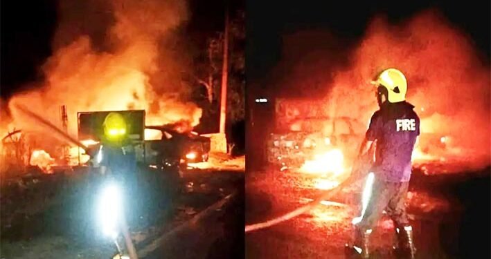 वर्कशॉप में खड़ी कारों में लगी भीषण आग