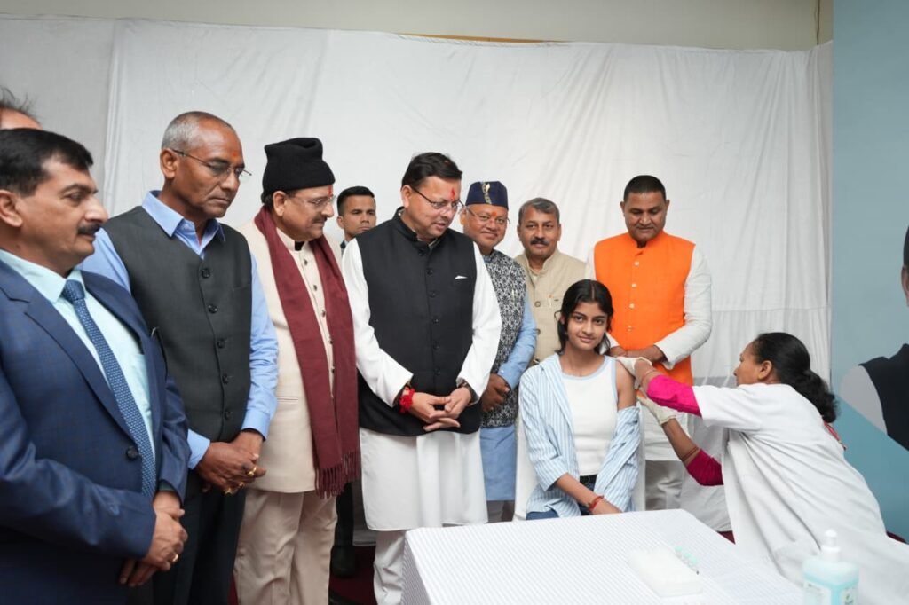 मुख्यमंत्री ने बताया कि राजस्थान के अजमेर से प्रधानमंत्री द्वारा प्रारंभ किए गए इस अभियान के अंतर्गत देशभर में 14 वर्ष की लगभग 1 करोड़ 15 लाख से अधिक किशोरियों को मुफ्त एचपीवी वैक्सीन दी जाएगी। मुख्यमंत्री ने कहा कि उत्तराखंड राज्य में भी इस अभियान के प्रथम चरण में 155 केंद्रों पर व्यापक स्तर पर टीकाकरण की व्यवस्था सुनिश्चित की गई है। इस अभियान की सफलता के लिए डॉक्टरों, नर्सों, एएनएम, आशा और आंगनवाड़ी कार्यकर्ताओं को प्रशिक्षित किया गया है ताकि कोल्ड-चेन व्यवस्था मजबूत हो। मुख्यमंत्री ने अभियान को सफल बनाने के लिए प्रदेश के सभी फ्रंटलाइन हेल्थ वॉरियर्स का आभार व्यक्त करते हुए कहा कि प्रधानमंत्री ने देश के प्रत्येक नागरिक के लिए गुणवत्तापूर्ण स्वास्थ्य सेवाएँ सुनिश्चित करने का संकल्प लिया है और उसे प्रभावी रूप से धरातल पर उतारा है। देश में स्वास्थ्य सेवाओं में व्यापक परिवर्तन देखने को मिला है। पहले जहाँ देश में 387 मेडिकल कॉलेज थे, आज वे बढ़कर 819 हो गए हैं। आज मेडिकल छात्रों की संख्या में डेढ़ गुना से अधिक की वृद्धि हुई है। केंद्र सरकार ने पिछले 11 वर्षों में 23 नए एम्स बनाकर देश के मेडिकल इंफ्रास्ट्रक्चर को मजबूती प्रदान करने का कार्य किया है।