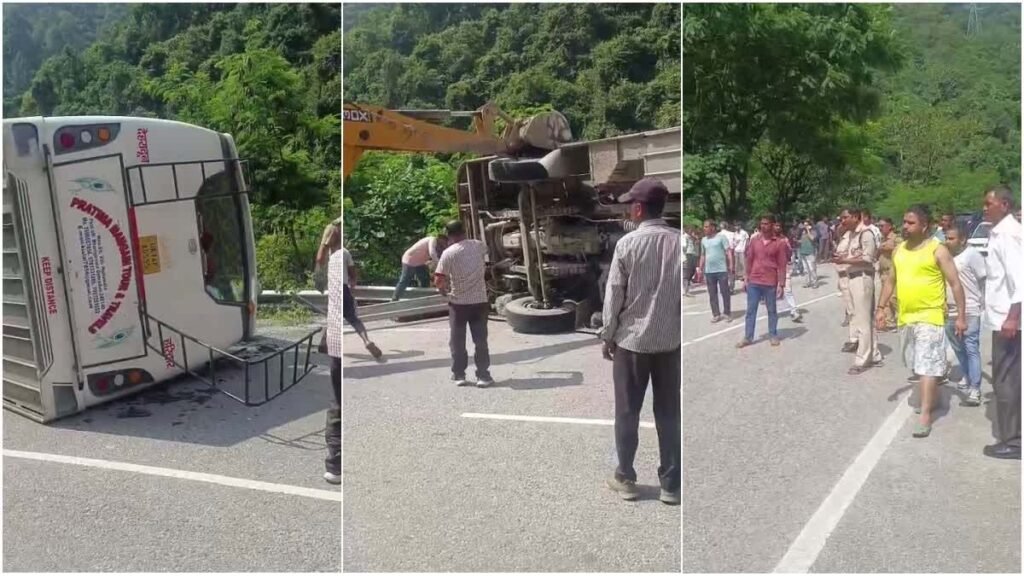 टिहरी में सवारियों से भरी बस पलटी, दो लोगों की मौत, 18 घायल