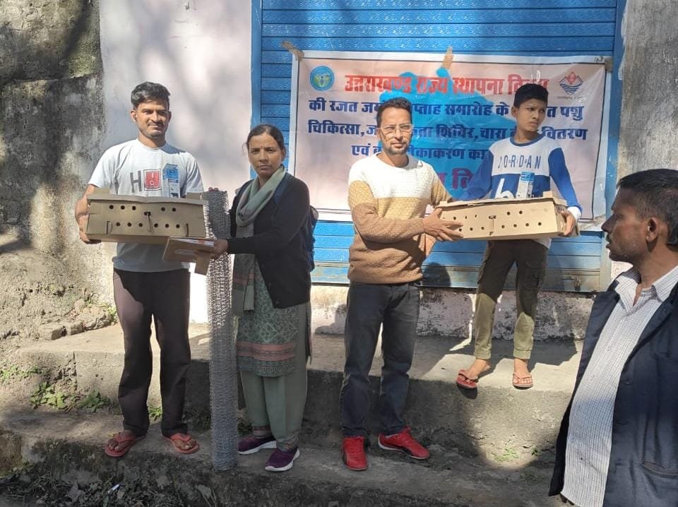 रुद्रप्रयाग। जनपद में राज्य स्थापना दिवस की रजत जयंती को लेकर पशु पालन विभाग के अधिकारी से लेकर कर्मचारी गांव-गांव जाकर पशुओं का उपचार के साथ चुस्त-दुरूस्त पशुओं के पालकों को सम्मानित कर उन्हें पुरस्कार वितरित कर रहे हैं, जिससे क्षेत्र की जनता में खुशी का माहौल देखने को मिल रहा है। मुख्य पशु चिकित्साधिकारी डॉ आशीष रावत के नेतृत्व में चलाए जा रहे इस अभियान में ग्रामीणों को अपने पशुओं के प्रति सचेत रहने और उनका समय-समय चैकअप करने को लेकर जागरूक किया जा रहा है। साथ ही उन्हें आवश्यक दवाईयां भी वितरित की जा रही है, जिससे पशुओं में होने वाली समस्याओं का उपचार हो सके।
