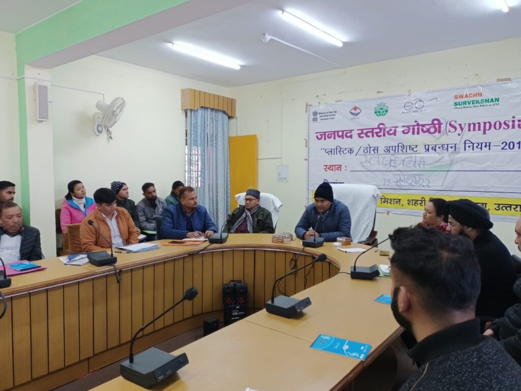 इससे पूर्व कार्यशाला में स्टेट मिशन मैनेजर/विशेषज्ञ स्वच्छ भारत मिशन शहरी विकास विभाग उत्तराखण्ड रवि बिष्ट, सैनिटरी इंस्पेक्टर विकास छाछर द्वारा प्लास्टिक/ठोस अपशिष्ट प्रबन्धन नियम-2016 विषय पर विस्तार से जानकारी दी गई। उन्होंने बताया कि रिट संख्या 93/2022 (पीआईएल) श्री जितेन्द्र यादव बनाम भारत संघ एवं अन्य में मा. उच्च न्यायालय नैनीताल उत्तराखण्ड द्वारा पारित आदेश 24 नवम्बर, 2022 में दिये गये निर्देशों के क्रम में यह गोष्ठी आयोजित की जा रही है। उनके द्वारा आईईसी गतिविधि प्रलेखन, चार अलग-अलग तरीके से कूड़ा एकत्रित करने, लेगेसी बेस्ट, संयुक्त टीम निरीक्षण, स्वच्छ सर्वेक्षण 2023 टूलकिट की थीम ‘‘वेस्ट टू वेल्थ (कचरे से सम्पत्ति)‘‘ आदि के संबंध में विस्तार से जानकारी दी गई। कहा कि थोक अपशिष्ट उत्पादन को चिन्ह्ति करें, किस कम्पनी का सबसे अधिक कूड़ा एकत्रित होता है, उसके लिए सप्ताहिक डाटा एकत्र कर रिपोर्ट बना सकते हैं। कहा कि सभी ईओ बायलॉज को पढ़ लें, अच्छे से जानकारी प्राप्त हो जायेगी। गोष्ठी में पर्यावरण मित्रांे, सफाई कर्मियों की सुरक्षा, हेल्थ चेकअप आदि पर भी चर्चा की गई। गोष्ठी में पीडी डीआरडीए प्रकाश रावत, डीपीआरओ एम.एम.खान, नगर परियोजना प्रबन्धक शहरी विकास टिहरी गढ़वाल अरविन्द जोशी, एमआईएस एक्पर्ट स्वच्छ भारत मिशन राकेश कुमार, एसीएमओ डॉ. एल.डी. सेमवाल, एसडीओ वन विभाग राखी जुयाल, ईओ देवप्रयाग रघुवीर राय, घनसाली सुशील बहुगुणा, चम्बा यू.डी. तिवारी, मुनिकीरेती तनवीर सिंह सहित अन्य संबंधित अधिकारी मौजूद रहे।