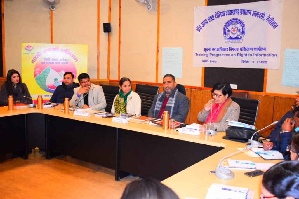डॉ आरएस टोलिया उत्तराखंड प्रशासन अकादमी की मास्टर ट्रेनर डॉ मंजू ढौंढियाल एवं पूनम पाठक ने सभी अधिकारियों को सूचना के अधिकार अधिनियम 2005 के विभिन्न पहलुओं एवं प्रावधानों की विस्तार से जानकारी दी। उन्होंने सूचना के अधिकार अधिनियम के कानूनी प्रावधानों एवं इस कानून की पृष्ठभूमि आदि के बारे में उपस्थित सभी विभागों के लोक सूचना अधिकारियों एवं अपीलीय अधिकारियों को विस्तार से जानकारी दी। इस कानून के तहत सूचना प्रदान करने के तरीके एवं इसकी समय सीमा जैसे विभिन्न प्रावधानों पर प्रकाश डाला गया।