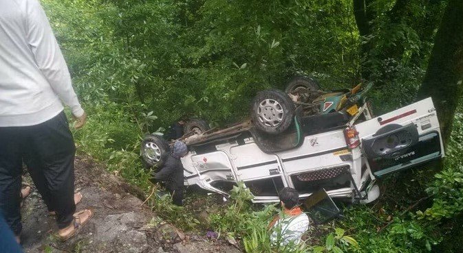 खाई में गिरा यात्रियों का वाहन,बाल-बाल बचे सभी यात्री