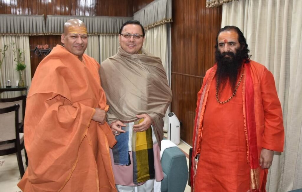 स्वामी कैलाशानंद गिरी महाराज ने सीएम धामी से की भेंट