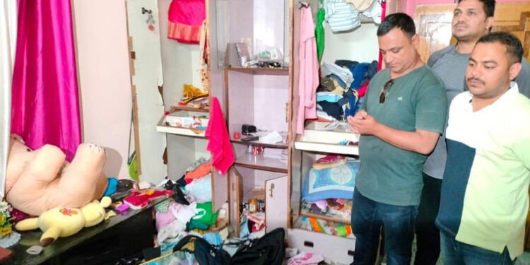 हल्द्वानी। शहर में चोरों ने इस बार एक ही रात में एक दुकान व एक घर में धावा बोल कर चोरी की घटना को अंजाम दिया। इससे पुलिस की रात्रि गस्त पर सवाल उठने लगे है। चोरों ने घर से 10 लाख रुपए से अधिक के जेवर सहित अन्य सामान ले गए। पुलिस ने घटनास्थल का मौका मुआयना कर चोरों की तलाश शुरू कर दी है। मिली जानकारी के अनुसार तल्ली हल्द्वानी सुयाल कालोनी निवासी कैलाश परिहार ने बताया कि 26 मई को वह पत्नी, मां और दो बच्चों के साथ हैदराबाद एक शादी समारोह में शामिल होने गए थे। घर पर कोई नहीं था। गुरुवार शाम पत्नी व एक बेटे के साथ वापस लौटे तो एक कमरे का सामान अस्त व्यस्त मिला। ये देख उनके पैरो तले से जमीन खिसक गई। जब वह कमरे के अंदर गए तो अलमारियों के लॉकर टूटे हुए थे।