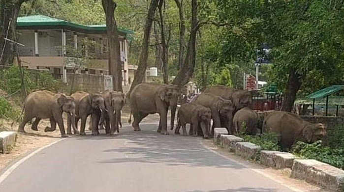 हाथियों को सड़क पर देख वहां राहगीरों में अफरा तफरी मच गई। सूचना पर पहुंची वन विभाग की टीम ने तुरंत ट्रैफिक रोका। इस दौरान करीब 30 मिनट तक हाईवे पर यातायात बाधित रहा।