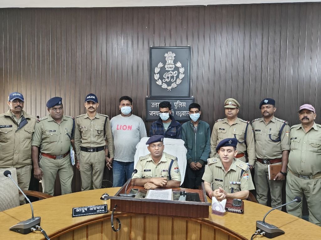 बीती 31मई को सुनील जोशी पुत्र जगदीश प्रसाद जोशी निवासी 33/11 के.वी. नई टिहरी कार्यस्थल 33/11 के.वी. सब स्टेशन जाखणीधार ने कोतवाली नई टिहरी में तहरीर देकर बताया गया था कि उनके कार्यस्थल जाखणीधार सब के.वी. पावर स्टेशन से 27 मई की रात अज्ञात चोरों द्वारा बिजली एल्यूमिनियम के तार व लोहे के एंगल चोरी कर लिए गये है। मामले मेें पुलिस ने मुकदमा दर्ज कर चोरों की तलाश शुरू कर दी गयी। चोरों की तलाश में जुटी पुलिस टीमों को पता चला कि घटना वाली रात एक संदिग्ध पिकअप वाहन क्षेत्र में देखा गया है। जिस पर पुलिस ने एक सूचना के अधार पर कोटेश्वर रोड जीरो पाइण्ट के पास बीती रात तीन चोरों को दो चौपहिया वाहनों सहित हिरासत में ले लिया। पूछताछ में उन्होने अपना नाम अंकित पुत्र भजन सिंह निवासी ग्राम गैर पटृी मुगर शन्ति थाना पुरोला जनपद उत्तरकाशी, धीरजनाथ पुत्र सोमनाथ निवासी ग्राम डुमेढ थाना विकासनगर जनपद देहरादुन व सर्वेस पुत्र घपलियालाल निवासी ग्राम कफनोल थाना पुरोला पटृी मुगर शन्ति जनपद उत्तरकाशी बताया। वाहनों की तलाशी में चुराया गया माल व आरी व कटर बरामद हुए। पूछताछ में अंकित द्वारा बताया गया कि मै बिजली ठेकेदार रोहित भाटी निवासी ऋषिकेश के साथ बिजली (पोल व लाईन ) का काम करता था, इसी दौरान मेरा सम्पर्क धीरज नाथ कबाड़ी निवासी कटा पत्थर विकासनगर से हुआ था जिसने बिजली के तार अच्छी कीमत पर बेचने के लिए बताया था लालच मे आकर मैने अपने साथी सर्वेश व धीरज व दो मेरे गांव के रिस्ते मे चाचा तथा एक लाखामण्डल के लडके के साथ मिलकर बिजली के तार चोरी करने का प्लान बनाया। इसके लिए धीरज ने हमारी गाडियों में तेल डलवाने के लिए 7000/रूपए दिये थे, वाहन मे तेल डलवाकर हम सभी उसी दिन विकासनगर से जाखणीधार आये जहां पर हमने रात्रि मे पावर हाउस से बिजली एल्यूमिनियम के तार व लोहे के एंगल चोरी किये हैं, तथा आगे चलकर और माल की तलाश करते हुए रजाखेत मे एक सोलर प्लांट से केबिल थ्री फेस वायर करीब डेढ कुन्तल टुकडों मे काटकर चोरी किया है। धीरज द्वारा कटा पत्थर विकासनगर मे स्वंय की कबाडी की दुकान बताया। बताया कि उन्होने अपने तीन अन्य साथियो ंके साथ मिलकर जाखणीधार पावर हाऊस तथा रजाखेत सोलर प्लांट के पास से बिजली के तार चोरी किये है। पुलिस अब फरार आरोपियों की तलाश में जुटी है।