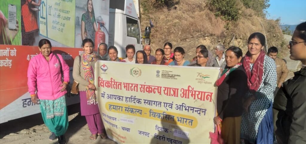टिहरी। जनपद टिहरी गढ़वाल क्षेत्रान्तर्गत ‘‘विकसित भारत संकल्प यात्रा‘‘ के तहत विकासखण्ड प्रतापनगर के ग्राम पंचायत सौड़ कुड़ी, शुक्री, बागी भरपुर, सिंदवाल गांव, पुजारगांव, गोल्डीयड़ी, डोडगथापला, विकासखण्ड कीर्तिनगर के ग्राम पंचायत मढी, मंगसू, पारकोट, पेण्डूला, विकासखण्ड जाखणीधार के टिपरी, पटूड़ी, कफलोग, गडडूगाड़, नेल्डा, गेवली, विकासखण्ड धौलधार के ग्राम पंचायत डांग तल्ला, कोटी, मंजखेत, डाबरी हडगी, घियाकोटी, घोम, विकासखण्ड भिलंगना के ग्राम पंचायत अगुण्डा, कोटी, पटूड़ गांव, धारगांव, तितराणा, सुनारगांव, सिंधवाल गांव, भल्डगांव, गवाणा तल्ला-मल्ला, बडियार गांव, हडियाणा मल्ला-तल्ला, विकासखण्ड देवप्रयाग के ग्राम पंचायत खरसाड़ी, दन्तसाड़ा, भैंसकोट, डांडा, विकासखण्ड चम्बा के ग्राम पंचायत आराकोट, गुनोगी बमुण्ड, गुनोगी उदयपुर, कखवाड़ी, खुरेत, ढुगंली, सुनारगांव, सिलोगी, विकासखण्ड जौनपुर के ग्राम पंचायत धौलागिरी, घेना, भेम, फिडोगी, बुराड़ी, बेल, धनचुला, सतेंगल, नौघर, खनेर, सड़ब में आई.ई.सी. वाहनों के माध्यम से केन्द्र सरकार द्वारा संचालित जन कल्याणकारी योजनाओं की जानकारी दी गई।