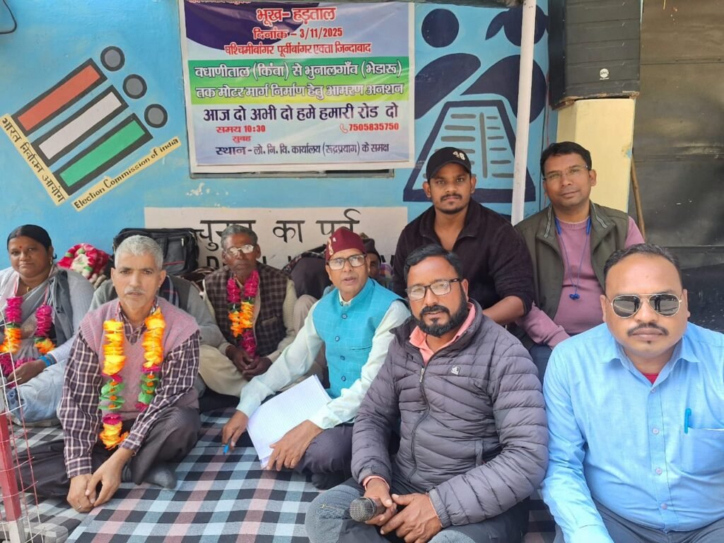 रुद्रप्रयाग। जिले के पूर्वी और पश्चिमी बांगर क्षेत्र में सड़क की मांग को लेकर ग्रामीणों का सब्र का बांध टूट चुका है। बधाणी ताल से भुनाल गांव भेडारू तक प्रस्तावित 9 किलोमीटर मोटर मार्ग को लेकर क्षेत्र के ग्रामीणों ने लोक निर्माण विभाग कार्यालय में अनिश्चितकालीन आमरण अनशन शुरू कर दिया है। बीते तीन नवंबर से शुरू हुई भूख हड़ताल में तीन बुजुर्ग ग्रामीण बैठे हुए हैं। एक तरफ जहां राज्य स्थापना की 25वीं वर्षगांठ को धूमधाम से मनाने को लेकर कर्मचारी-अधिकारियों का काफिला रात-दिन सड़कों में दिखाई दे रहा है, वहीं रुद्रप्रयाग विधानसभा की बांगर पट्टी के ग्रामीण मात्र 9 किमी सड़क के लिए 35 सालों से संघर्ष कर रहे हैं। राज्य निर्माण के एक दशक पहले से ग्रामीण सड़क को लेकर आंदोलन शुरू कर चुके थे, मगर दुर्भाग्य कि साढ़े तीन दशक बीत जाने के बाद भी उनकी मांग को पूरा नहीं किया गया है, जिससे क्षेत्र में आज भी प्रसूति महिला और बीमार ग्रामीणों को सड़क के अभाव में पालकी से ढोना पड़ता है।